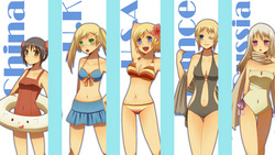(左から:中国たん、ロシアたん、アメリカたん、イギリスたん、フランスたん)
